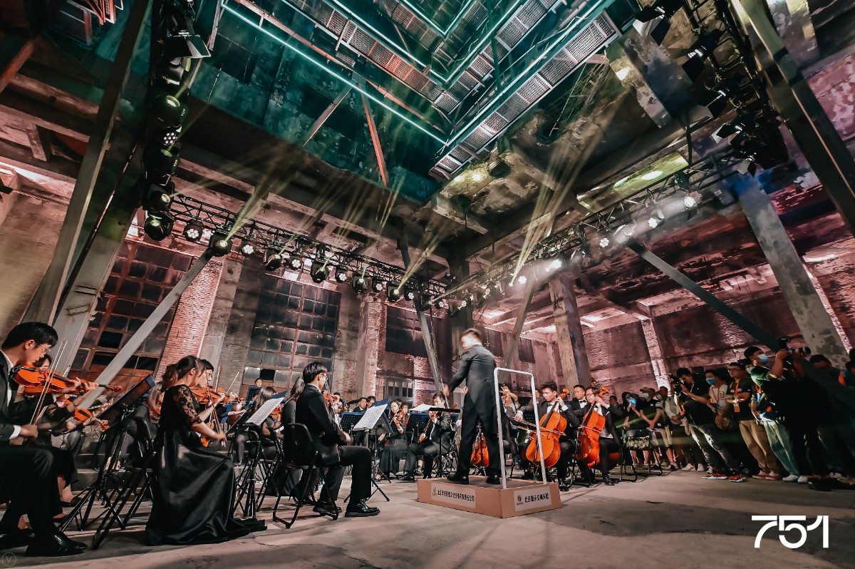 当晚,建成于1990年的6号锅炉房首次启用。高34米的五层中空塔型空间内外,尚未修补的玻璃窗、露出了钢筋的混凝土楼板,都透露出这里已闲置多年。而就在这个空间内,一场交响乐正在上演。从《不可能的任务》、《闲聊波尔卡》到《安娜波尔卡 》,北京新乐交响乐团的演奏家们以5首交响曲让这个空间发挥出别样魅力。