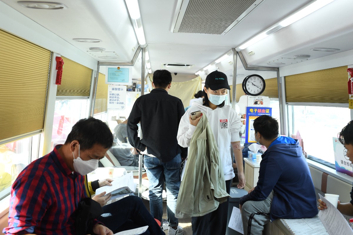 测体温、量血压、做流调、填写征询表……在志愿者和工作人员的引导下,不少爱心人士在血样检测合格后,陆续登上献血车。