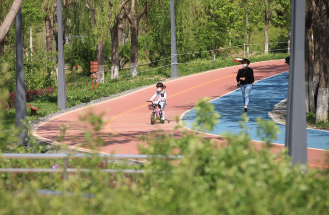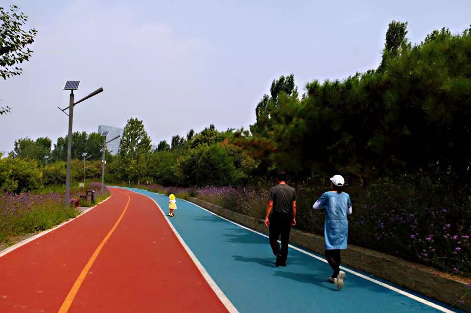 公园内还围绕湖面建设了总长度5.2公里的健身步道,和家人们在这里可以休闲、健身、亲水。