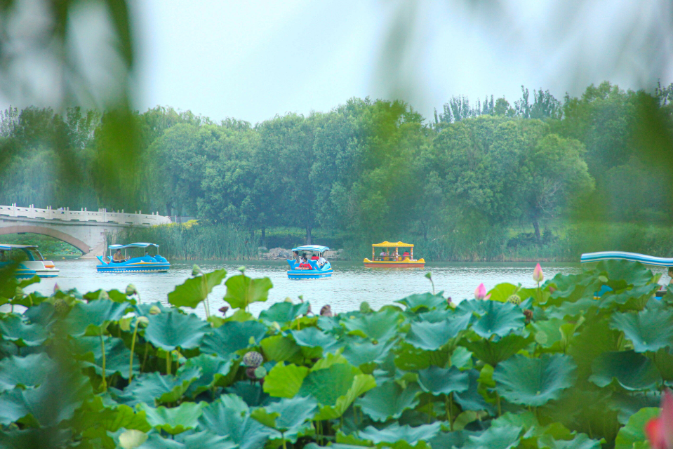 湖面不时的有野鸭飞起鸣叫,和家人一起在湖中游船观赏荷花,近距离感受大自然的馈赠。