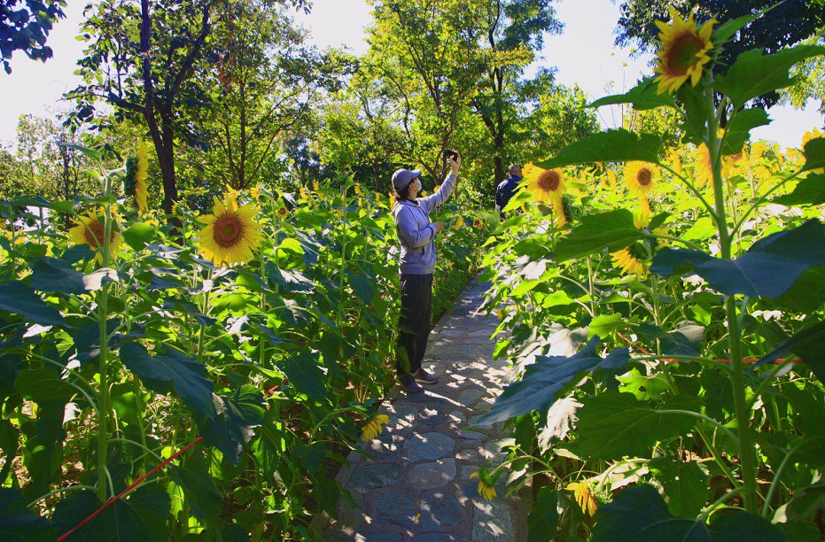 从空中俯视,森林形成一条绿带将小城围绕。这条绕城绿带则是亦庄新城滨河森林公园,如今正是向日葵盛放的时候,何不带上家人来这里“打卡”?