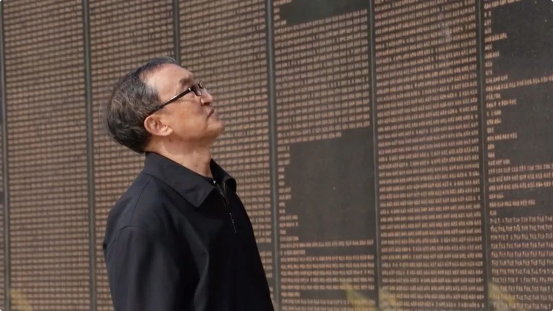 郑继烈说:“我就把这张照片摁在了英名墙父亲的名字上,我说爸,我们全家来看你来了。我就一直摁着照片,我说爸,你看,我妈也来了,都来了!”