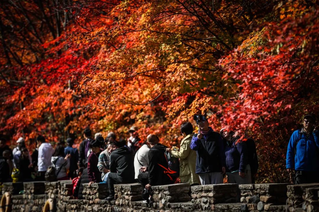 10月7日,游客在辽宁省本溪满族自治县大石湖风景区内游玩。新华社记者 潘昱龙 摄