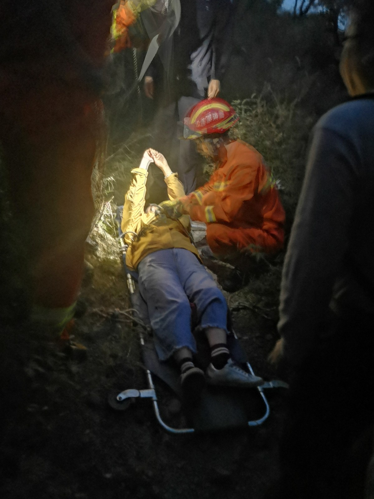 10月6日晚,在北京昌平区十三陵水库西路九龙游乐园对面山上,一名女子不慎扭伤脚踝。黑夜之中,昌平消防指战员纯靠手抬肩扛,耗费一个半小时,硬是从山顶将女子运送到了山下。