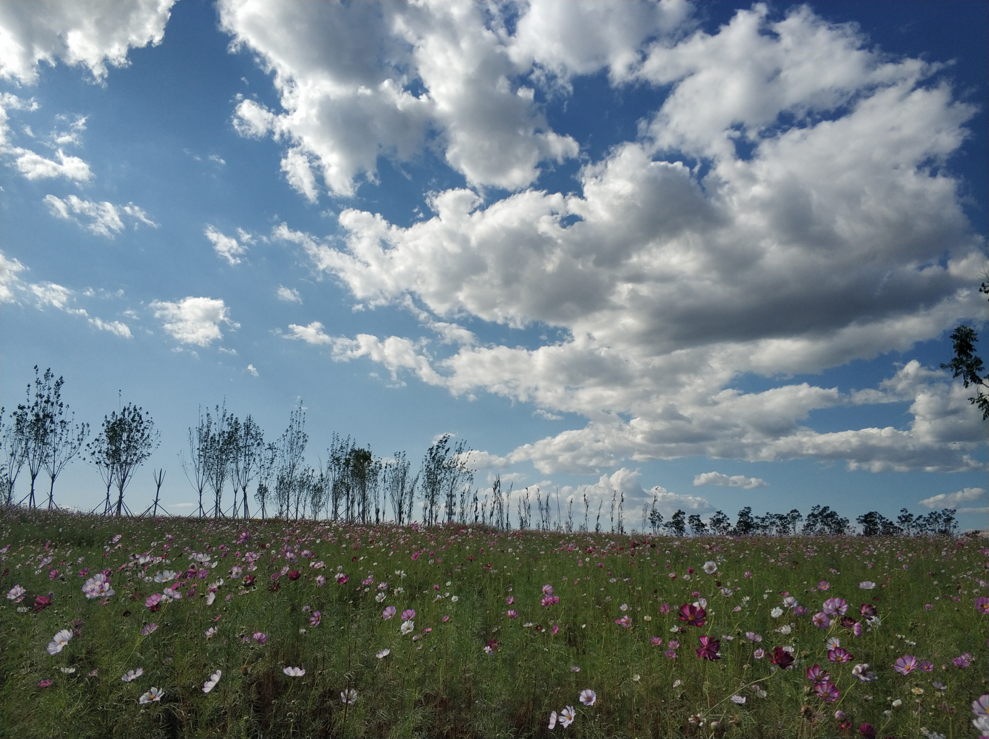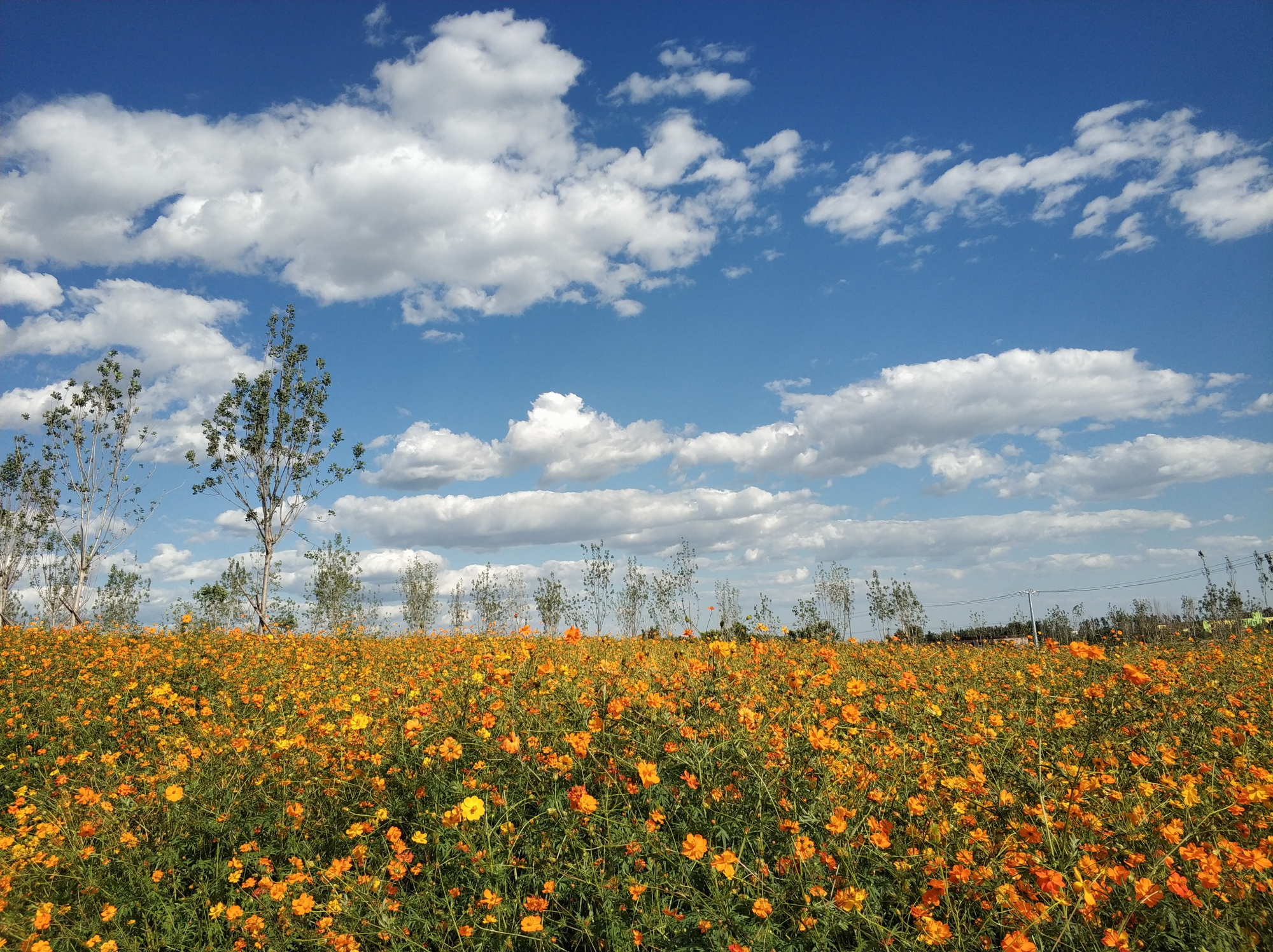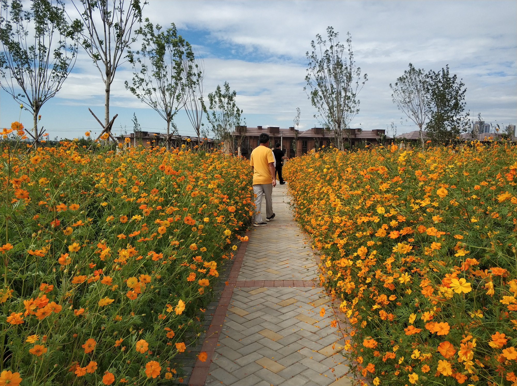 黑桥公园位于朝阳区崔各庄地区东南部,毗邻五环路和机场高速。走进刚刚试运行的黑桥公园二期,初秋时节,湖面平静宽阔映衬天高云淡,道路两侧金鸡菊绽放如初,青草、绿树、红花、黄叶色彩层次鲜明,“秋意正浓”的黑桥公园二期吸引了周边市民前来游览赏玩。