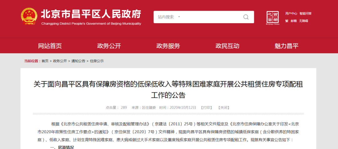 公告指出,此次配租的家庭为2020年10月21日(含)前通过“三审两公示”程序获得公租房备案资格,且尚未配租、配售保障性住房的昌平区城镇低保家庭(含分散供养的特困家庭)、低收入家庭、计划生育特殊困难家庭、患大病或做过大手术家庭以及重度残疾家庭。但若申请家庭在轮候期间发生人口、住房、收入变化却未如实申报的,或者已超出公租房准入标准的,不得进行意向登记。