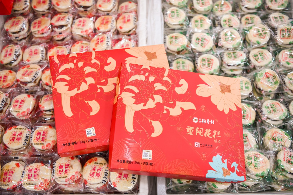 除了寿桃之外,重阳节的应景儿吃食重阳花糕也同时上市。据了解,重阳花糕的形态较为复杂,需要手工制作才能完成,一块小小的重阳花糕要经过和面、切块、包酥、码放果料、烘烤等近20道工序,连各式果料的码放位置都有精确标准。据上述负责人介绍,今年北京稻香村还特意根据顾客需求,对原有的重阳花糕进行了降糖改良。“延续传统食俗的同时,也让大家吃得更健康。”