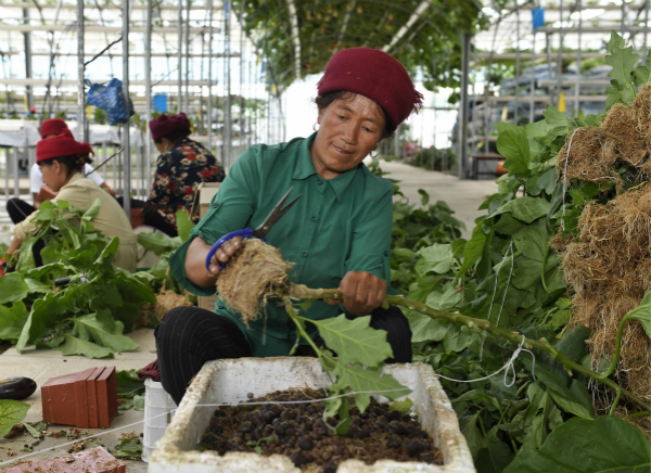 针对四川大凉山的大部分青壮年外出务工的实际,各级政府多措并举,探索打造妇女居家灵活就业与传统优势手工业联动发展的模式,决战决胜脱贫攻坚。图为凉山彝族自治州昭觉县四开乡好谷村的村民在家附近的现代农业产业园内务工。 新华社记者 刘坤 摄