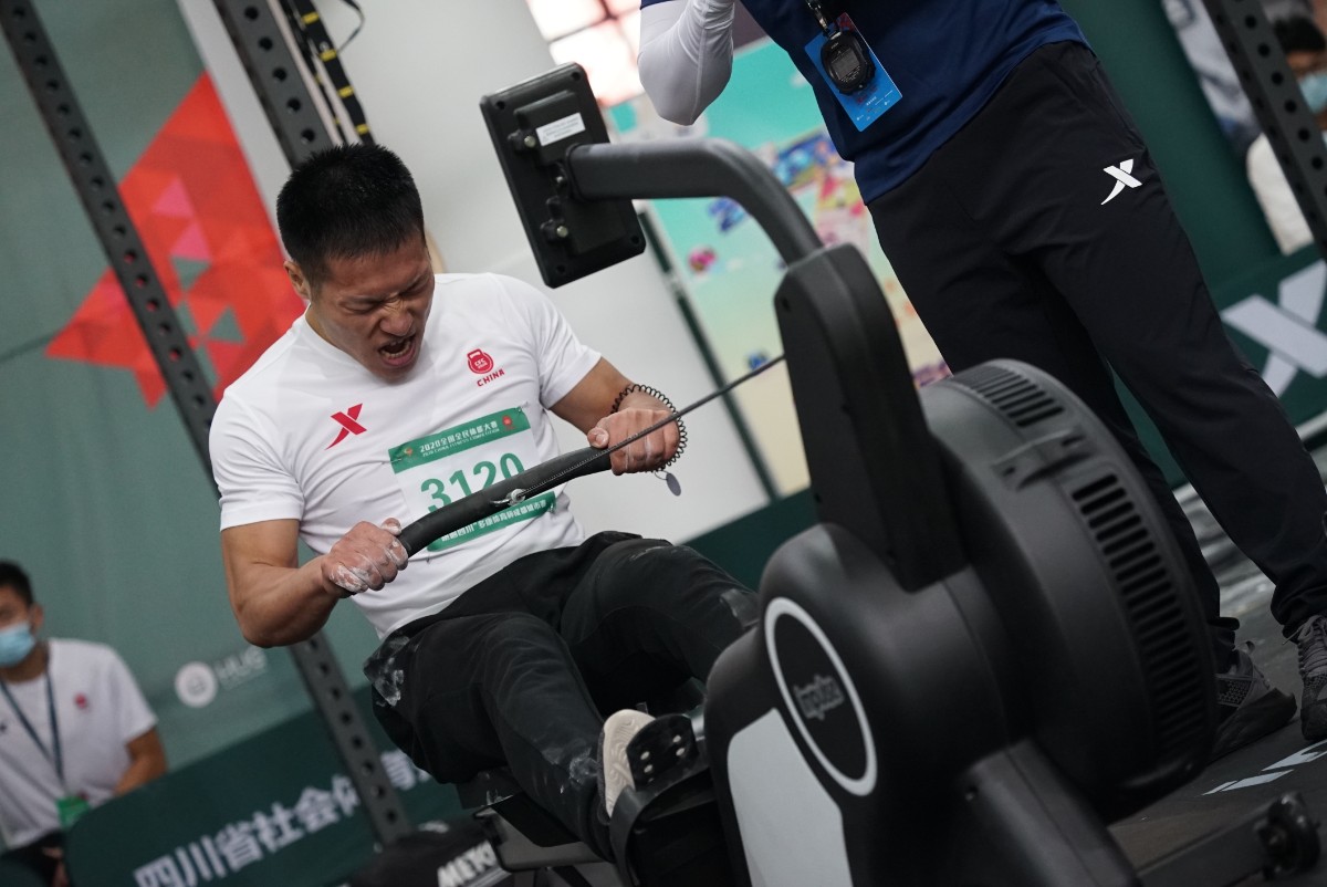 比赛现场热闹非凡,数百位体能精英在现场动感节拍下,进行两两体能PK,引体向上、风阻单车、划船机……看似简单的动作,却一次次冲击着选手们的身体极限,呐喊声与助威声交织在一起。经过一番激烈角逐,最终男子组冠军由杨子勃摘得,女子组冠军被王艺收入囊中,杨子勃、王艺和黄斌组成的“三个闷墩儿”队获得团体项目第一名。成都站男子前16名、女子前8名及团体前4名将直通杭州总决赛。