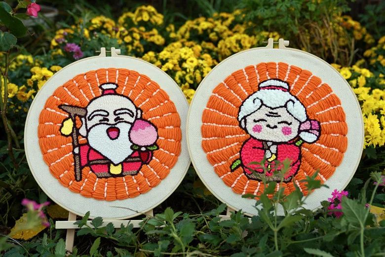 此外,公园还推出以香山独家定制“福公公寿婆婆”形象为元素的戳戳绣手工织绣文创产品,供大家选购,可以亲手绣制一幅,为长辈送上一份用心的祝福。