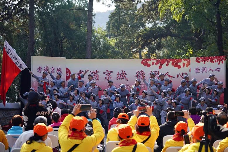 9:30至11:00在香山革命纪念地(旧址)之一的丽瞩楼院内,举办传统曲目的文艺汇演,现场表演民乐、昆曲、京剧、单弦、合唱等曲目,文明引导员、社会监督员、志愿者、劳动者等中老年朋友和现场市民游客共同观看演出,演出全程通过香山公园微博平台进行直播。