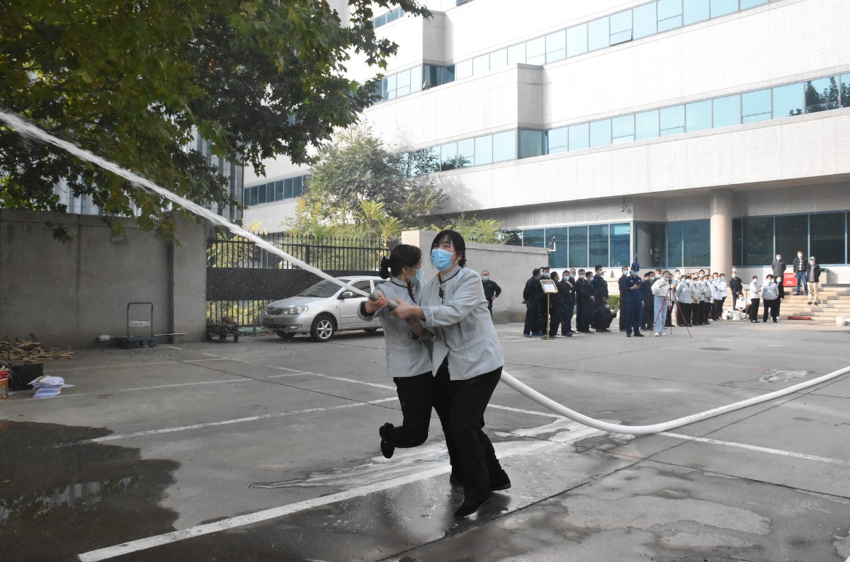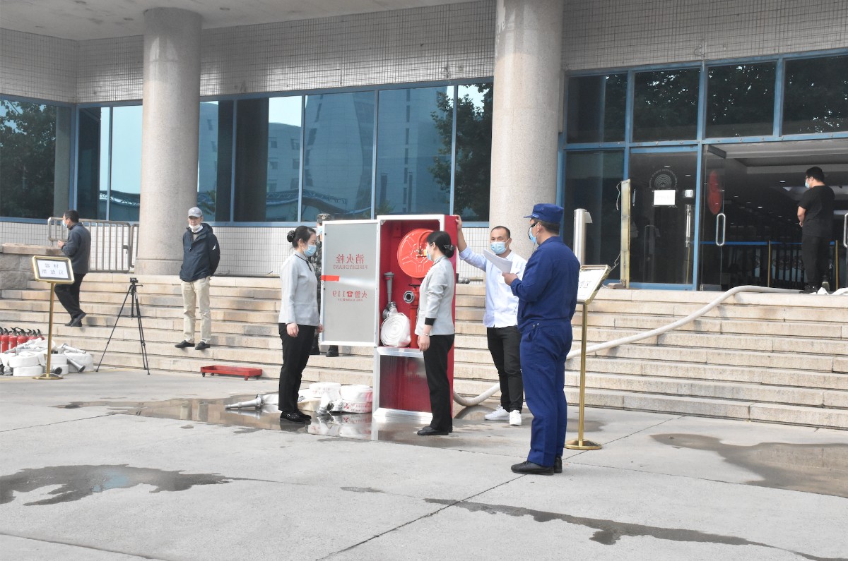 在考核场上,参训人员使用的是一个名为“移动式消火栓”的设备。这一设备中,栓头、水带、水枪、灭火器等设备一应俱全,与常见的墙壁消火栓完全一致。