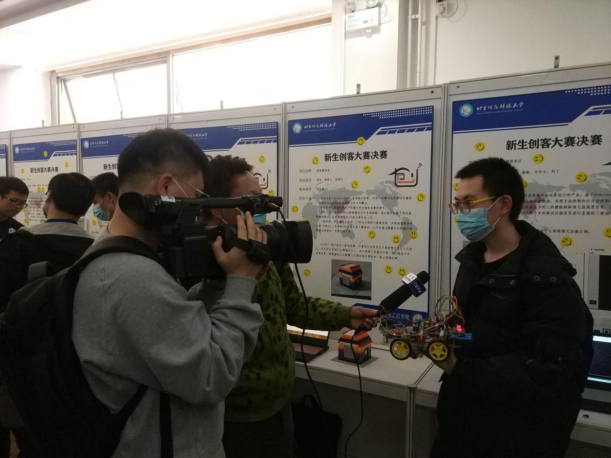 当天下午,作为第四届科技创新节一项重要活动,通信学院新生创客大赛决赛暨作品展在健翔桥校区举行。活动以“爱国、爱校、爱家”为主题,学生利用智能硬件结合微信小程序、移动云平台、物联网等技术,融入“疫情防控”的时代背景,设计有关智慧医疗、智慧校园、智慧家庭、智慧生活等创新应用作品,以科技服务社会。