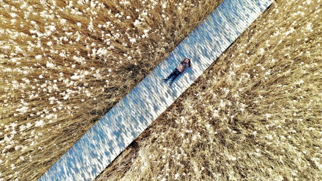 沿着观景栈道一路向前,曲曲折折,蜿蜒向芦苇丛的深处,每当清风拂过,苇杆轻轻摇曳,枝白蓬蓬的芦花,顺势起舞,在风中尽情释放自己的美丽,吸引游客驻足留恋。