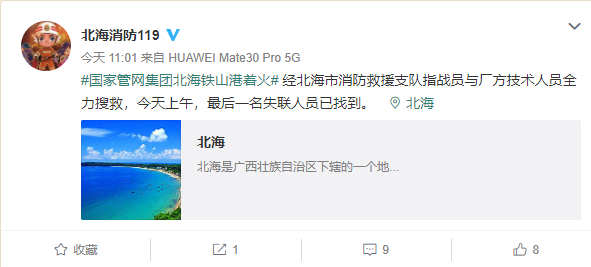 11月2日中午,国家管网集团北海液化天然气有限责任公司位于铁山港区的LNG接收站码头2#罐罐前平台管线在施工时发生着火事故,致5人死亡1人失联3人重伤。11月3日上午11时,北海消防发布通报称,最后一名失联人员已找到。