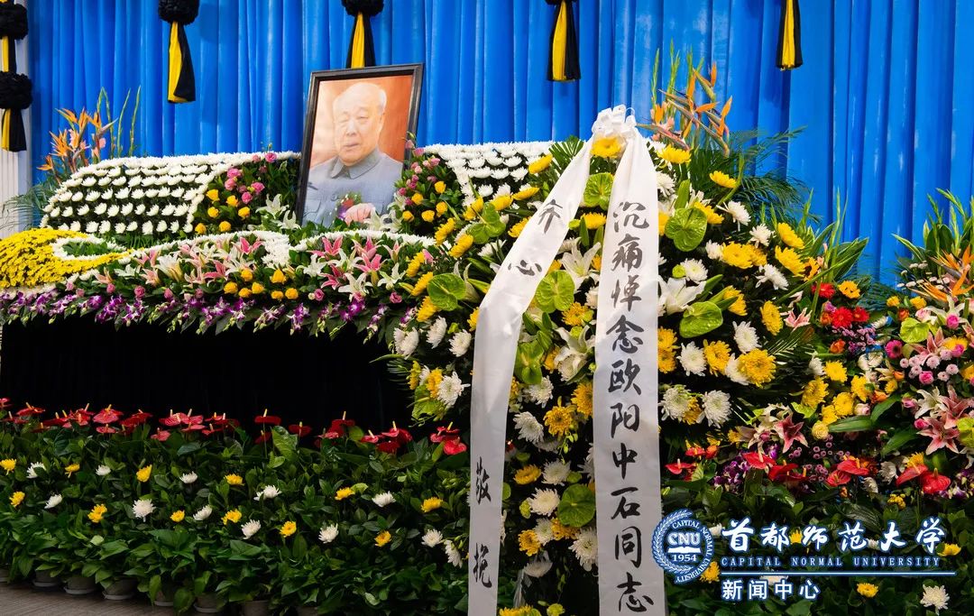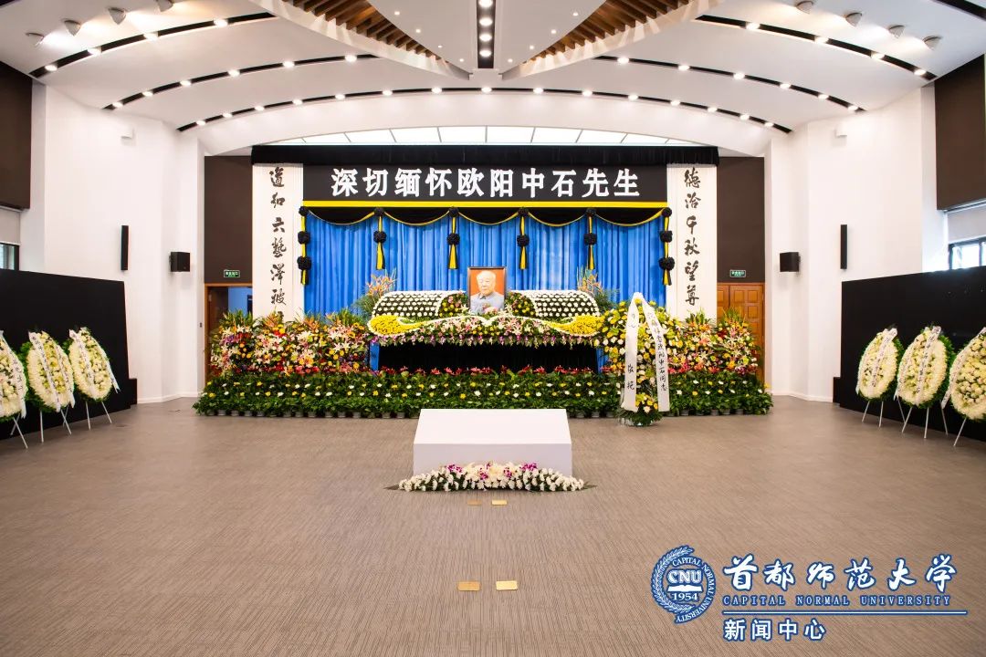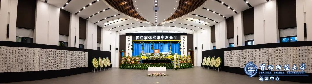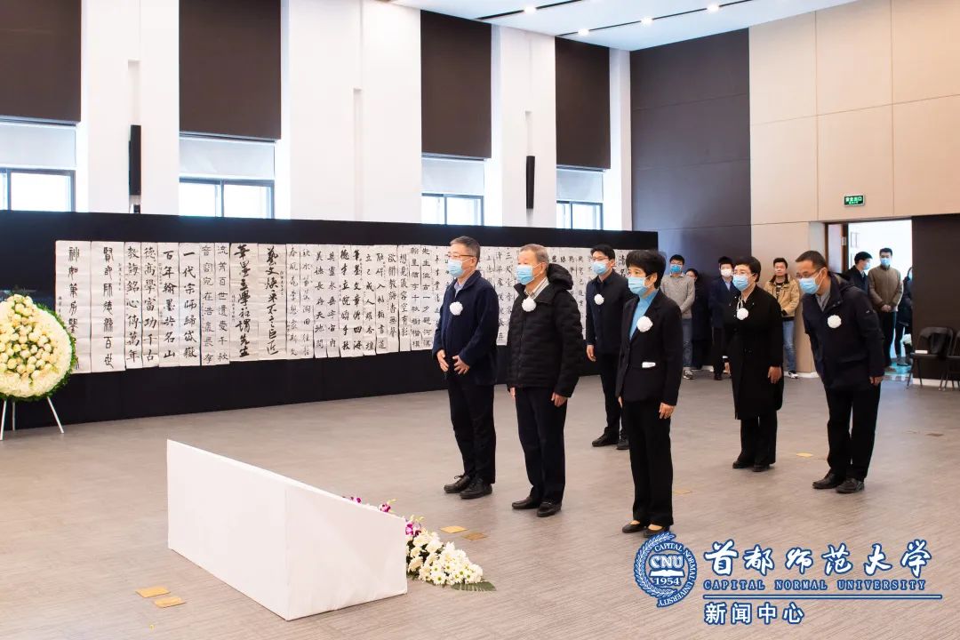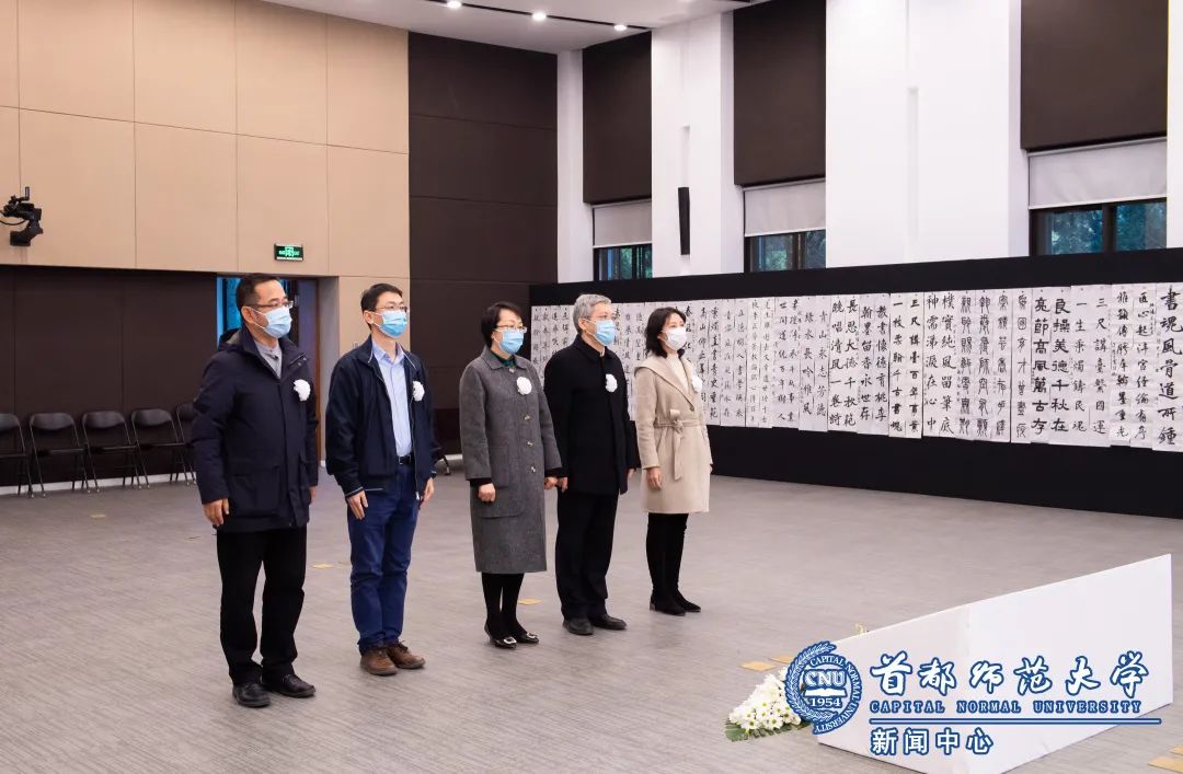 11月6日下午,在校本部实验楼报告厅欧阳中石先生灵堂。海淀区委统战部常务副部长刘珍、副部长王选革代表海淀区委区政府和区委统战部向欧阳中石先生敬献花圈挽联,为中石先生家属带来慰问金表示慰问。校纪委书记李中奇陪同吊唁。