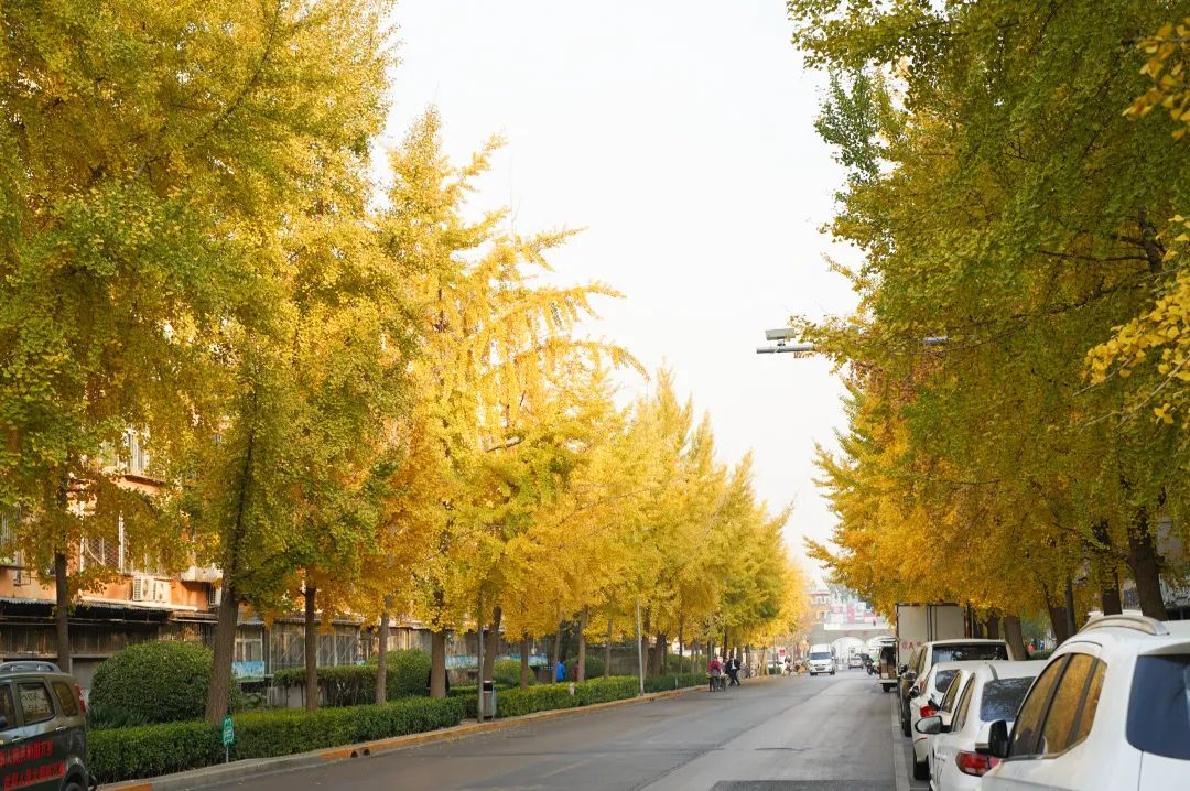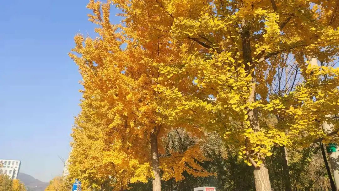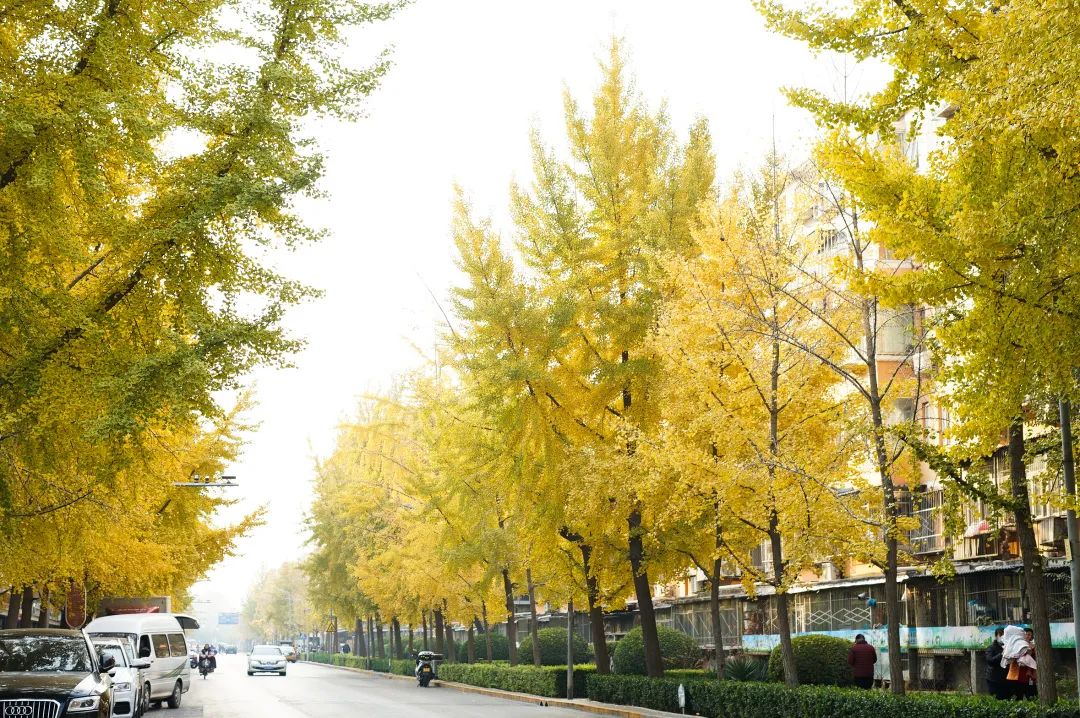 道路两旁高大的银杏树