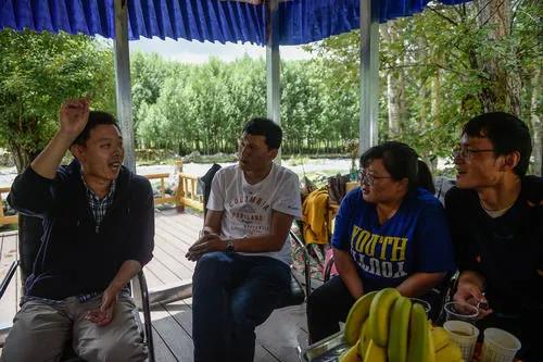 在西藏拉萨达孜区,北京世纪坛医院的援藏医生贾萌(左一)和当地医生分享诊疗经验(8月1日摄)。新华社记者 彭子洋 摄