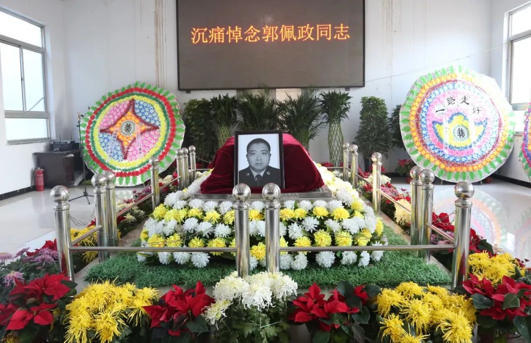 11月10日下午,河北高速交警总队在廊坊大城县殡仪馆举行告别仪式,隆重送别战友郭佩政。