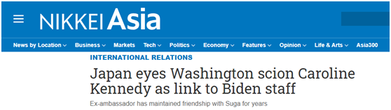 (《日经亚洲评论》:日本将华盛顿名门卡罗琳·肯尼迪视为与拜登团队的联系管道)