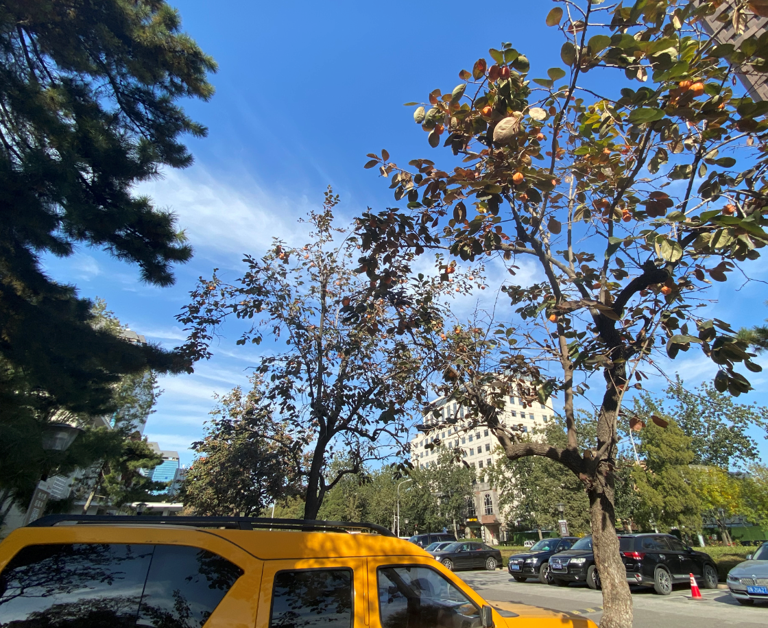柿子树下,是一处停车场。一位刚停好车的司机,抬头看了看树,又重新上车,点火,换了个地方停。