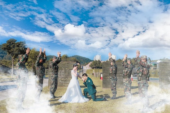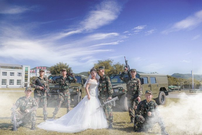 高颜值暴击!火箭军33名官兵拍摄战地婚纱照