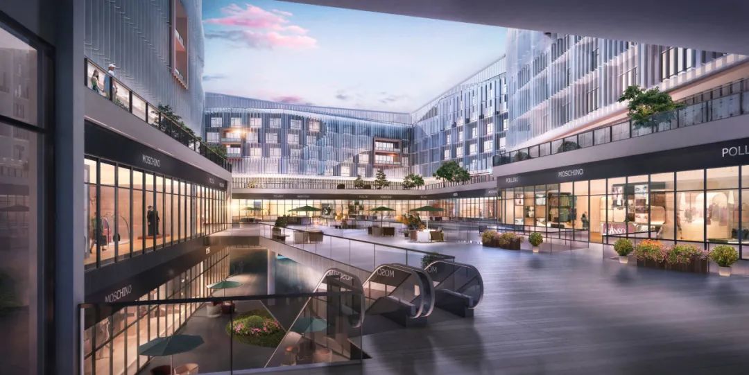 首层及地下一层为对外开放的特色配套服务空间,在公共部分设置下沉庭院引入自然光线,种植绿化植物,使地下空间地面化,并成为地面与地下商业空间的垂直交通点。