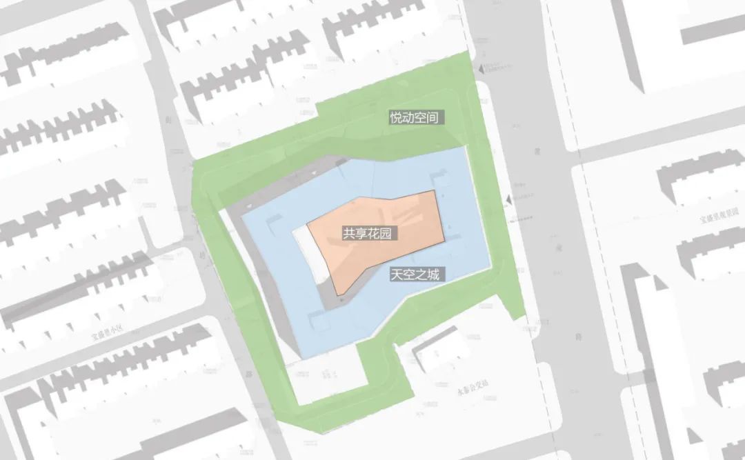 景观设计打造悦动空间、天空之城、共享花园三大区域。悦动空间,打造一级沿街界面以及满足人们日常活动需求。天空之城,独特屋顶花园的呈现,贯穿乐跑环道打造健康活力社区。共享花园,于城市形象界面设计空中大厅,满足社区居民交往,休闲等公共需求。