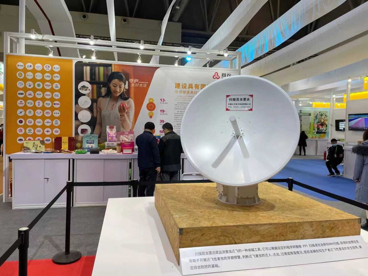 在第十八届中国国际农产品交易会上,北京展团智能化生产展区的一台侦察雷达不断旋转监测,这是由北京市植物保护站与中国农科院植保所、无锡立洋电子科技等单位联合研发并部署的第一部双模式昆虫雷达,能够实时监视迁飞性害虫的行踪。