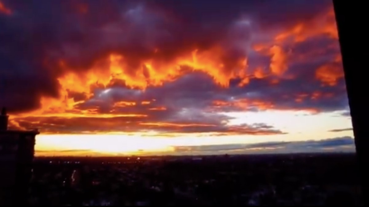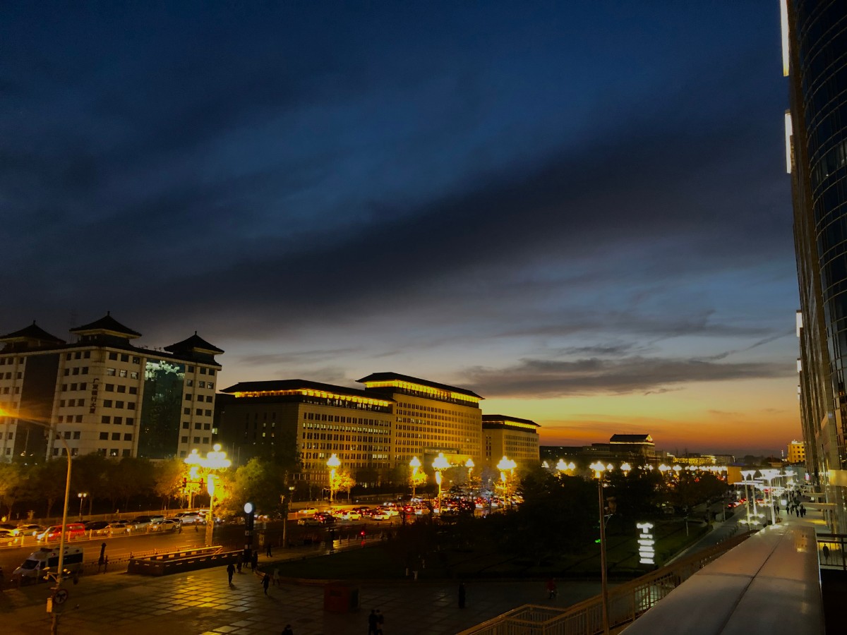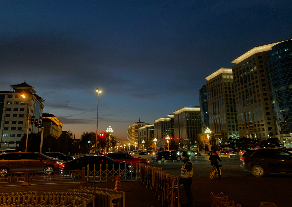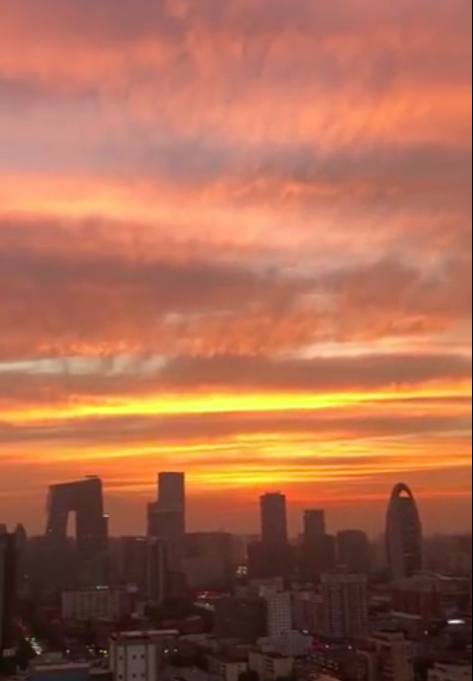 11月28日傍晚时分,北京日落,余晖“染红”天边,分外壮观。