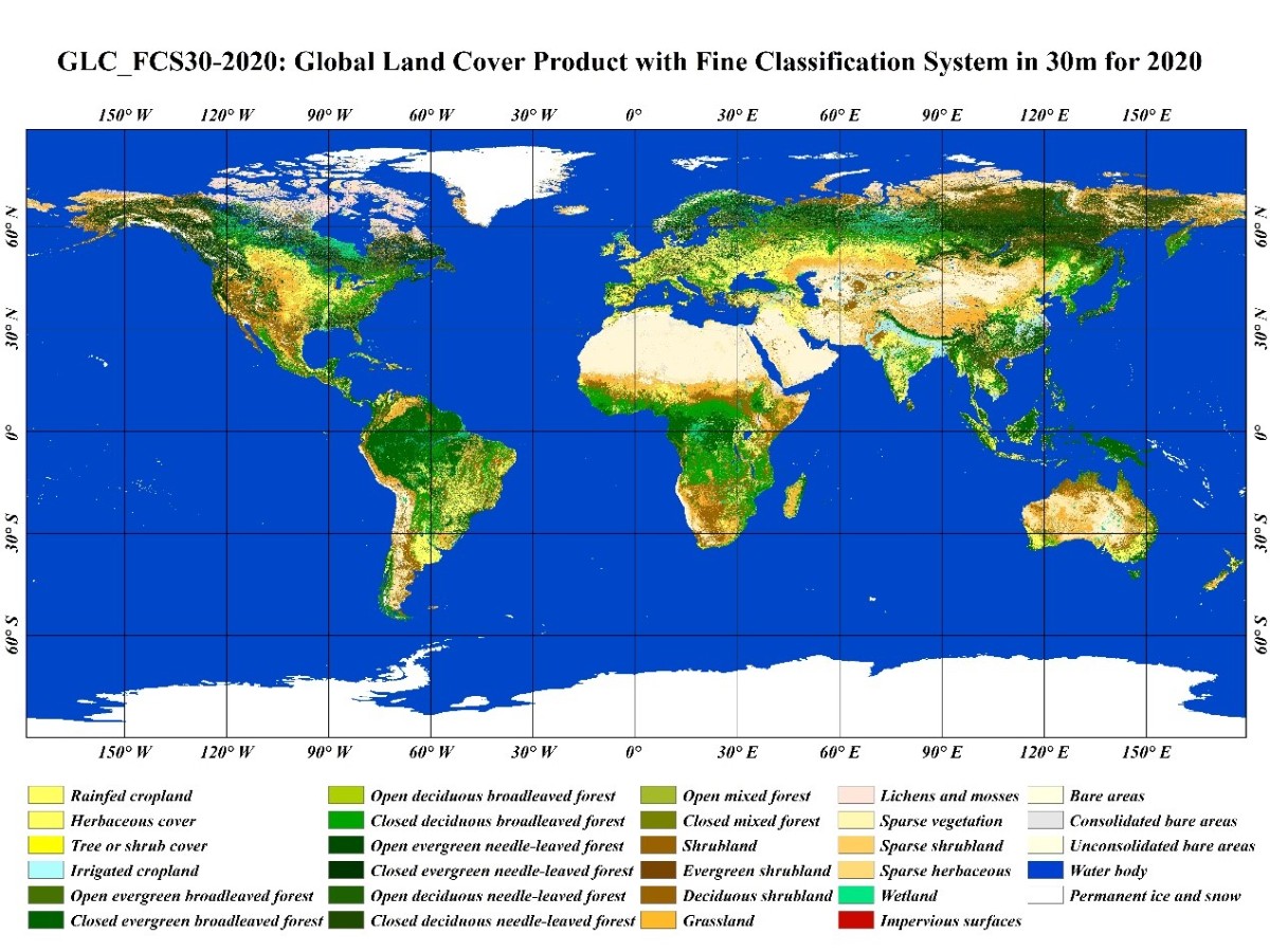 记者今天从中国科学院空天信息创新研究院获悉,近日该院刘良云研究员团队对外发布2020年全球30米地表覆盖精细分类产品。目前该数据集已在地球大数据科学工程数据网站免费共享。