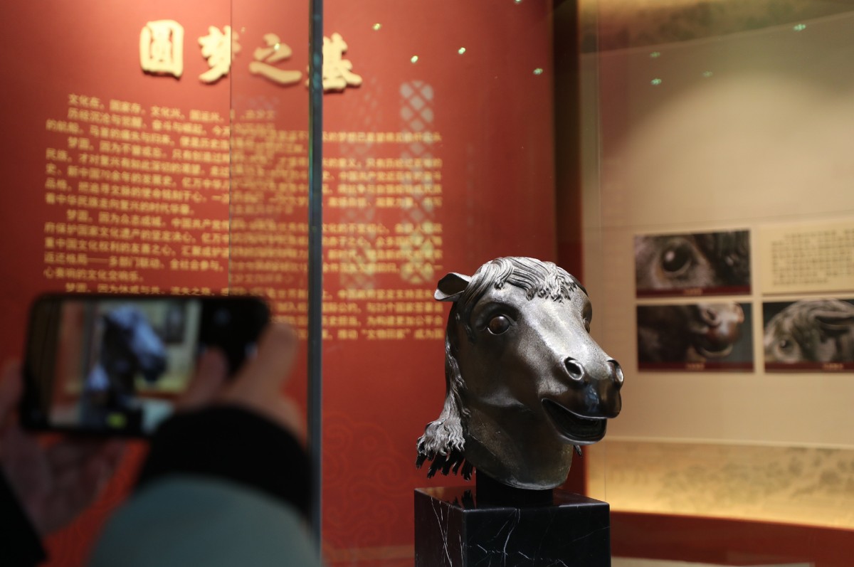 在圆明园正觉寺,《百年梦圆——圆明园马首铜像回归展》同时揭幕。正觉寺文殊亭内,马首铜像被赫然置于正中间。此次入藏,国家文物局会同北京市有关方面,选定圆明园正觉寺作为马首铜像展示场地,乾隆时期文物建筑文殊亭作为马首的专属展区。今年以来,各方克服疫情带来的种种困难,合力实施展示提升与安防改造工程,正觉寺具备了文物安全与展览条件,国家文物局将马首铜像正式划拨圆明园管理处收藏。