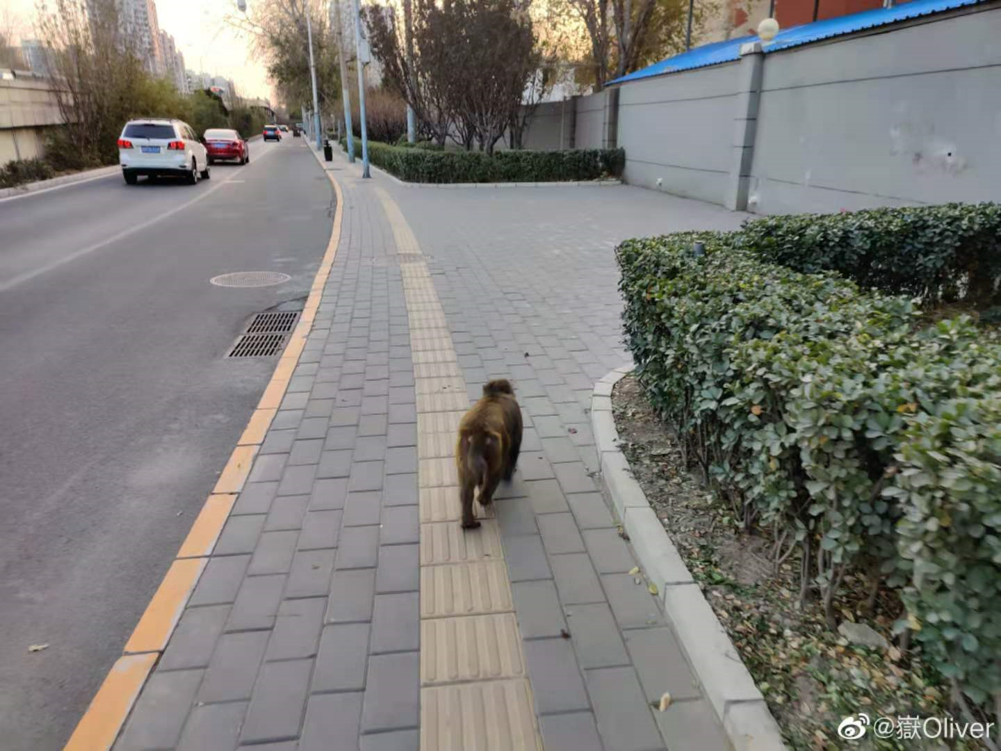 今天上午,北京工业大学本部校园的银杏大道上,一只猴子大摇大摆地在路上溜达穿行,引发不少人驻足拍摄。记者从北京市野生动物救护中心了解到,近期在北京门头沟、西城以及东四环附近有多人发现猴子踪迹,但是否为同一只猴子还不好确定。