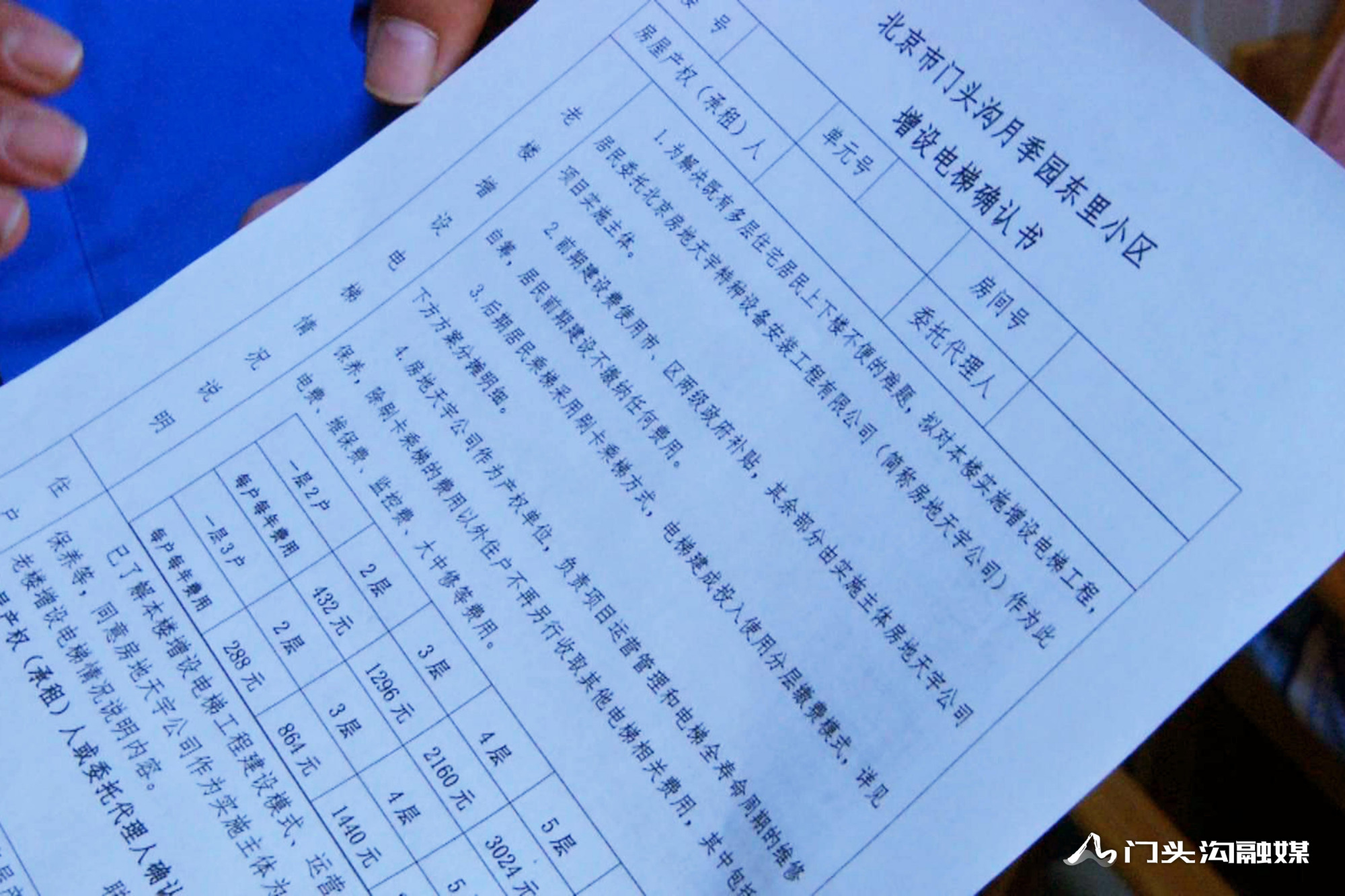 “咱们打算在本单元增设电梯,也是为了方便各层居民的出行。如果您没有什么其他意见的话,我们这边需要您签署一份增设电梯协议书。”协调小组向住在一层的居民征集意见。