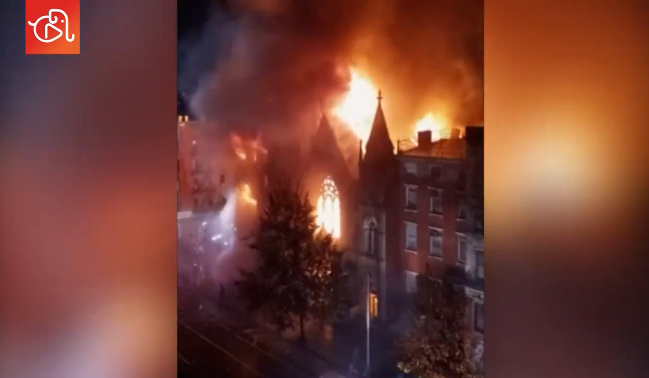 当地时间12月5日,美国纽约市曼哈顿东村附近的一座19世纪教堂(Middle Collegiate Church)被大火烧毁。