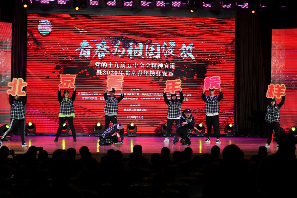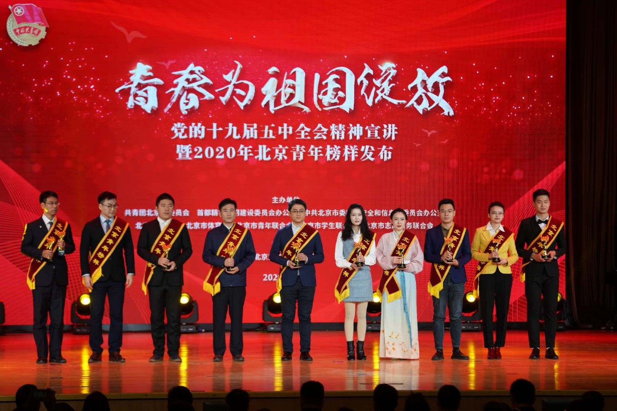 12月6日下午,“青春为祖国绽放”党的十九届五中全会精神宣讲暨2020年北京青年榜样发布活动在北京第二外国语学院举行。活动揭晓了2020年北京青年榜样年度人物,并为十九届五中全会精神青年榜样宣讲团授旗。
