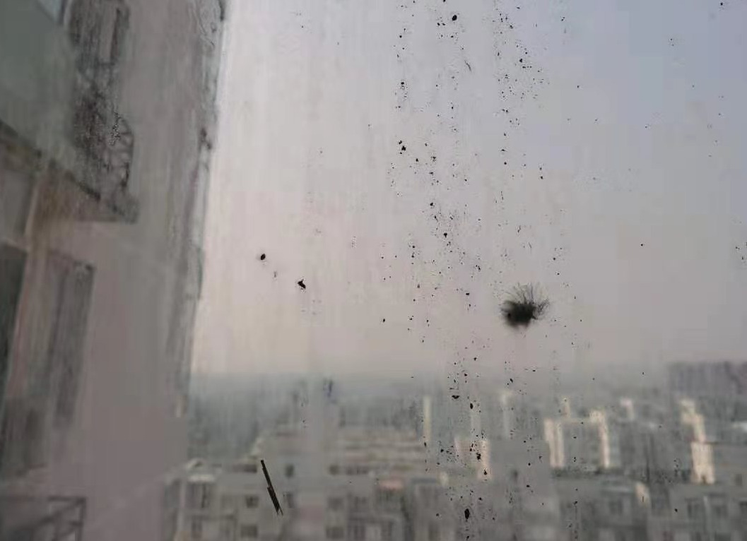 同样被鸽子问题困扰的,还有家住朝阳区广华居小区17号楼的王女士。纱窗上满是大片小片的鸽子羽毛鳞片,窗玻璃、空调机上溅满鸽粪,王女士看着眼前的景象就发愁。