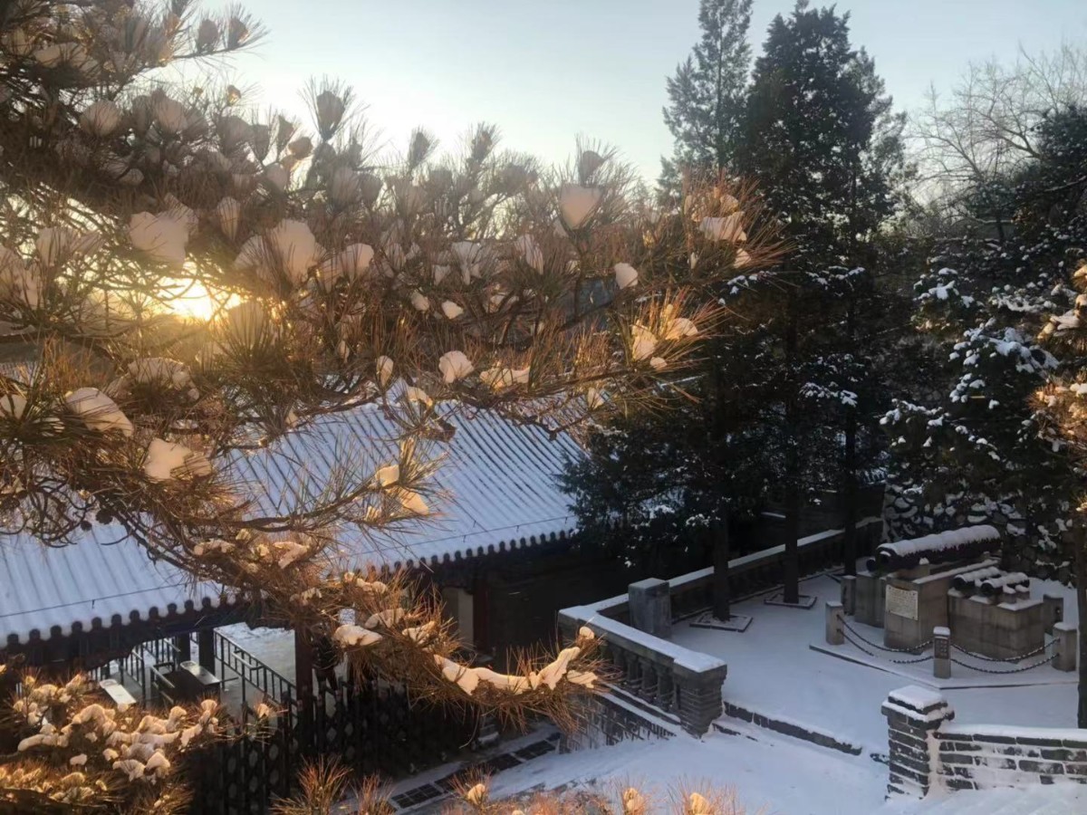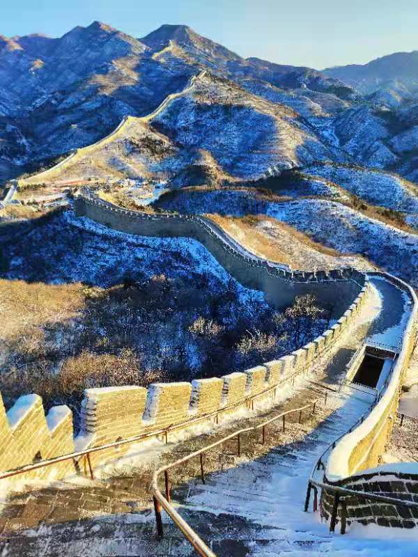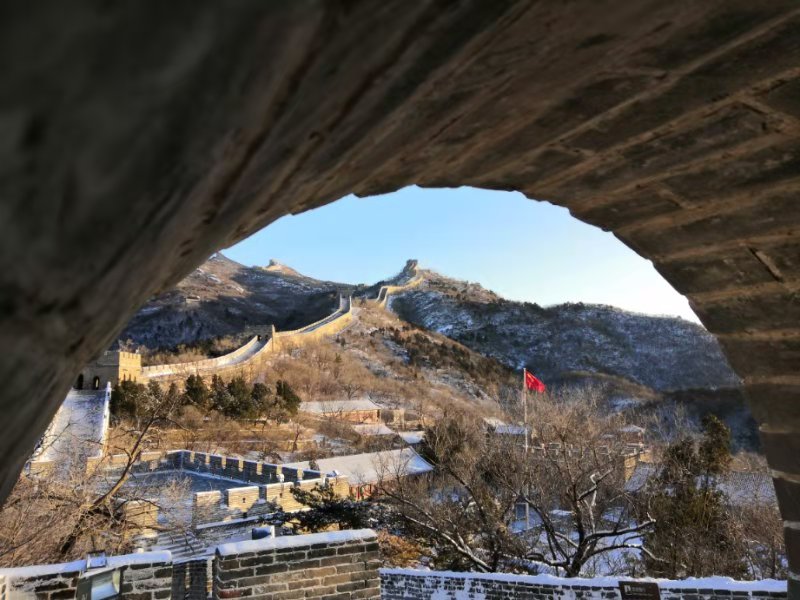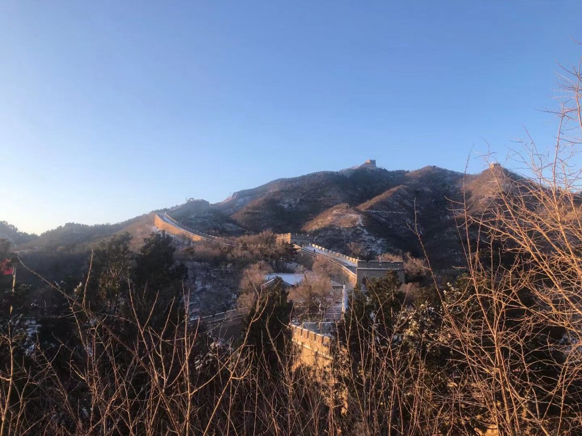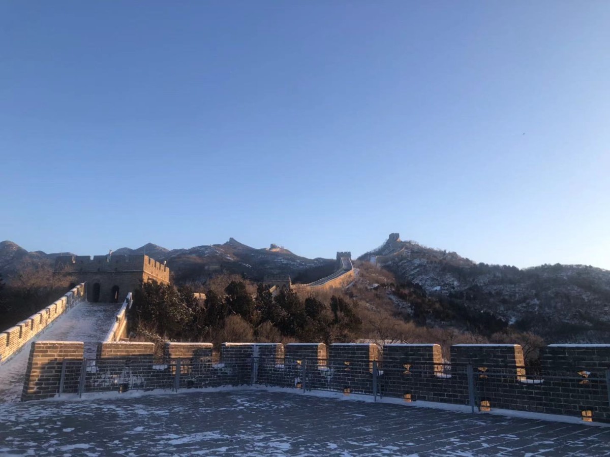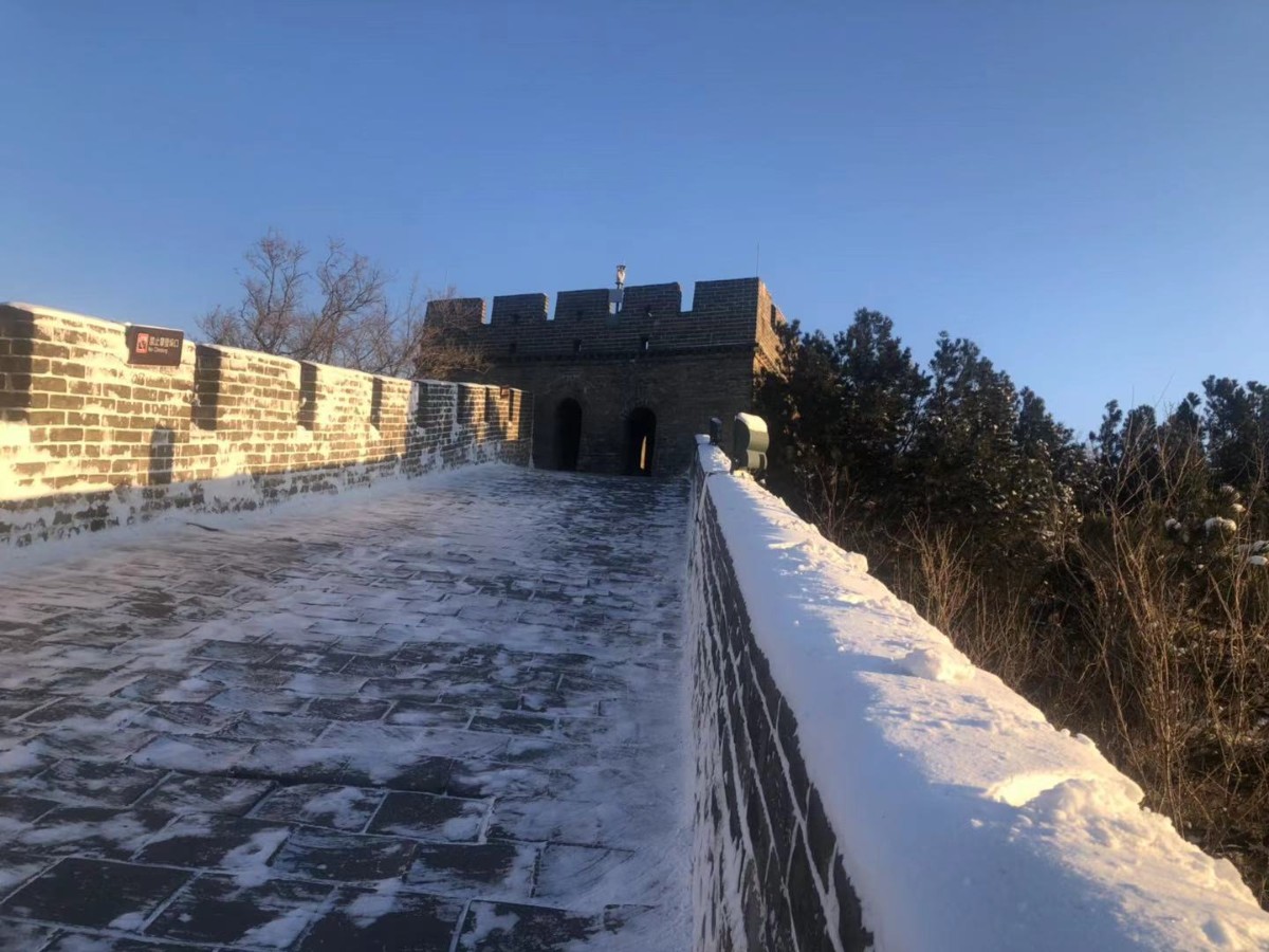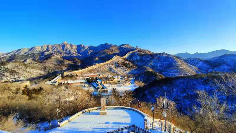 晨光初现,经过一夜降雪,延庆再现海陀戴雪盛景。整个妫川大地一片雪白,夏都公园内的妫水河结成冰面,与湖畔的红色楼宇交相辉映,蜿蜒的海陀山脉之上、蜿蜒的八达岭长城上,白雪皑皑、延绵起伏、银装素裹,尽显巍峨壮观。