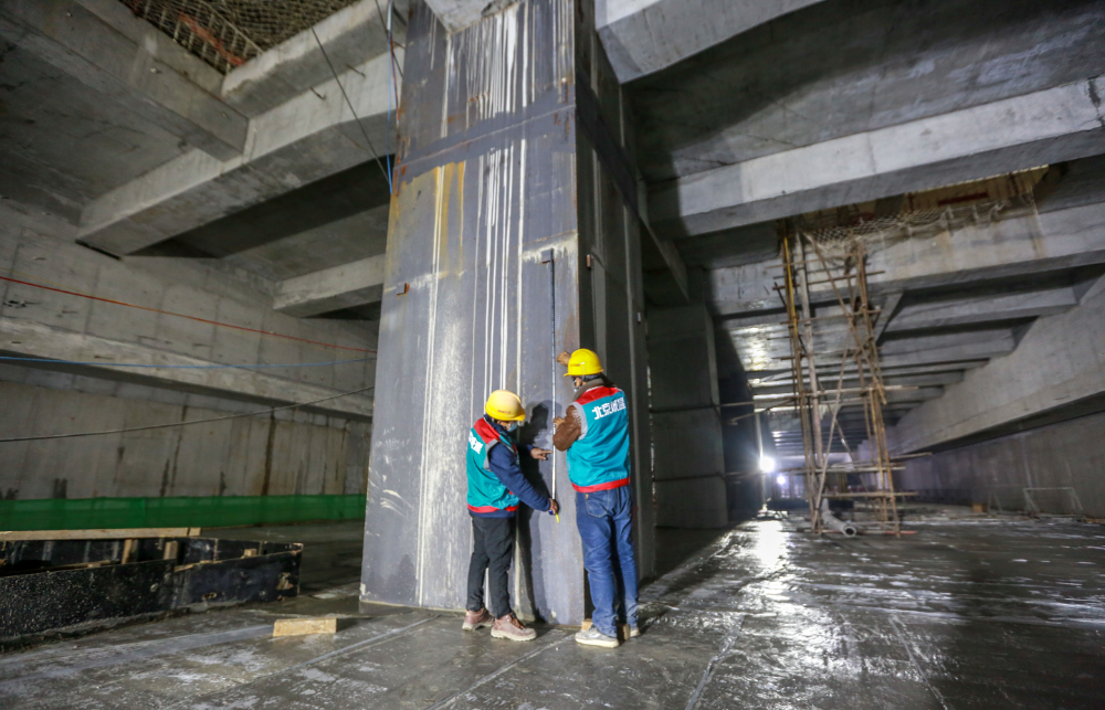 “位于正下方的车站,在一定程度上要承担起‘地基’的作用。”刘旭指着现场如巨树般的钢管柱说到,为了能够实现对未来高铁站房的支撑,丰台站罕见地使用了44根以特殊钢板制成的钢管柱,其最大的特点就是承重性能好。这些高达23米、厚度最高可达15公分的钢管柱,在地上与丰台火车站主体结构连接,因而对安装时的标高误差也必须控制在2毫米内,“现场吊装时,4个工人得分3节焊接,一根钢管柱要焊上6天,焊缝遍布在柱子内部。”