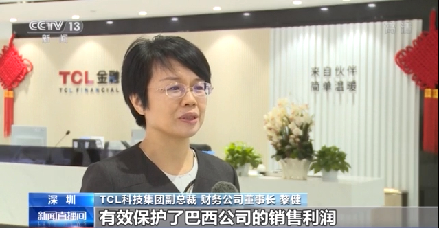 TCL科技集团副总裁、财务公司董事长 黎健:受到全球疫情影响,今年三四月份,美元升值,各种非美元货币贬值。以巴西货币雷亚尔为例,其间贬值31%,这意味着我们每1000万美元的销售就会损失超过1800万元人民币,但是由于我们提前对巴西外汇风险做了全面管理和锁定,有效保护了巴西公司的销售利润,避免了近1亿元(人民币)的汇率损失。