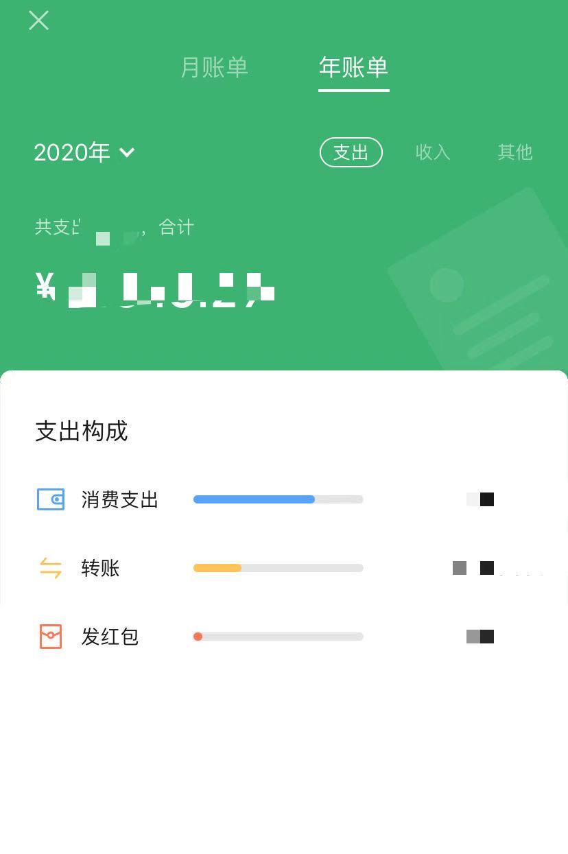 “当我打开微信年账单,我才发现原来我这么有钱!”一位网友感叹。继支付宝可查年账单后,近日,微信2020年账单上线,用户可以通过 我>支付>钱包>账单>统计>年度账单 查看今年截至目前微信账户的收入、支出和个人资金流转情况。