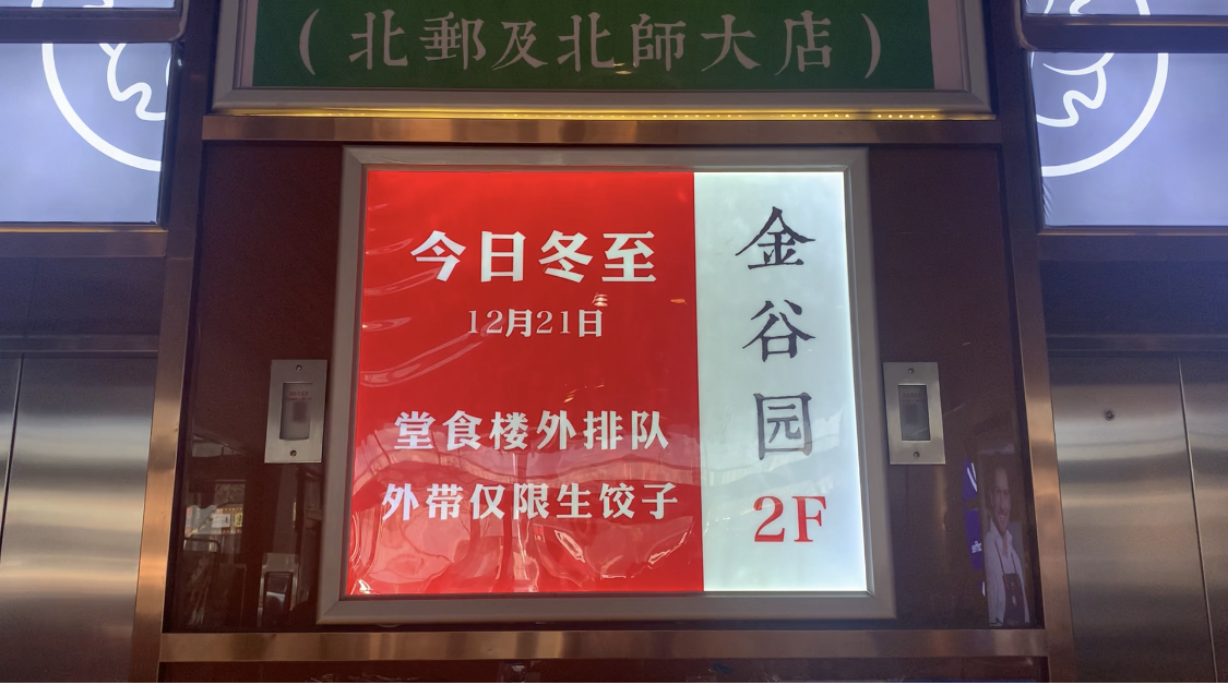 上午才过9时,杏坛路上的金谷园饺子门前就早早排起了长队,这样的长队预计将持续一整天。“平常我们是10点开门,今天9点多第一桌客人就来了,10点的时候我们第一波堂食的客人都已经坐满了。”金谷园的员工向前来咨询的顾客解释说,“今天不拿号,直接排队,现在排队的话预计得两到三个小时。”上午11时许,吃饺子的队伍已经排了约100米,从店门口一直排到了马路边。金谷园前一天就已经在公众号上发出通知,今日暂停外卖,而且要求“人齐落座就餐、不占空桌”,一切都是为了排队的顾客能尽快就餐。店里还特意为冬至日制作了新的菜单,包括大家爱吃的鲅鱼、香辣牛肉、青瓜鲜虾、猪肉马蹄玉米等馅儿的饺子,还增加了打包生饺子的外卖服务。中午12时,堂食的顾客已经有100多桌了。“还没到往常的饭点儿,就已经卖出好几百份饺子了,这队得排一整天。”