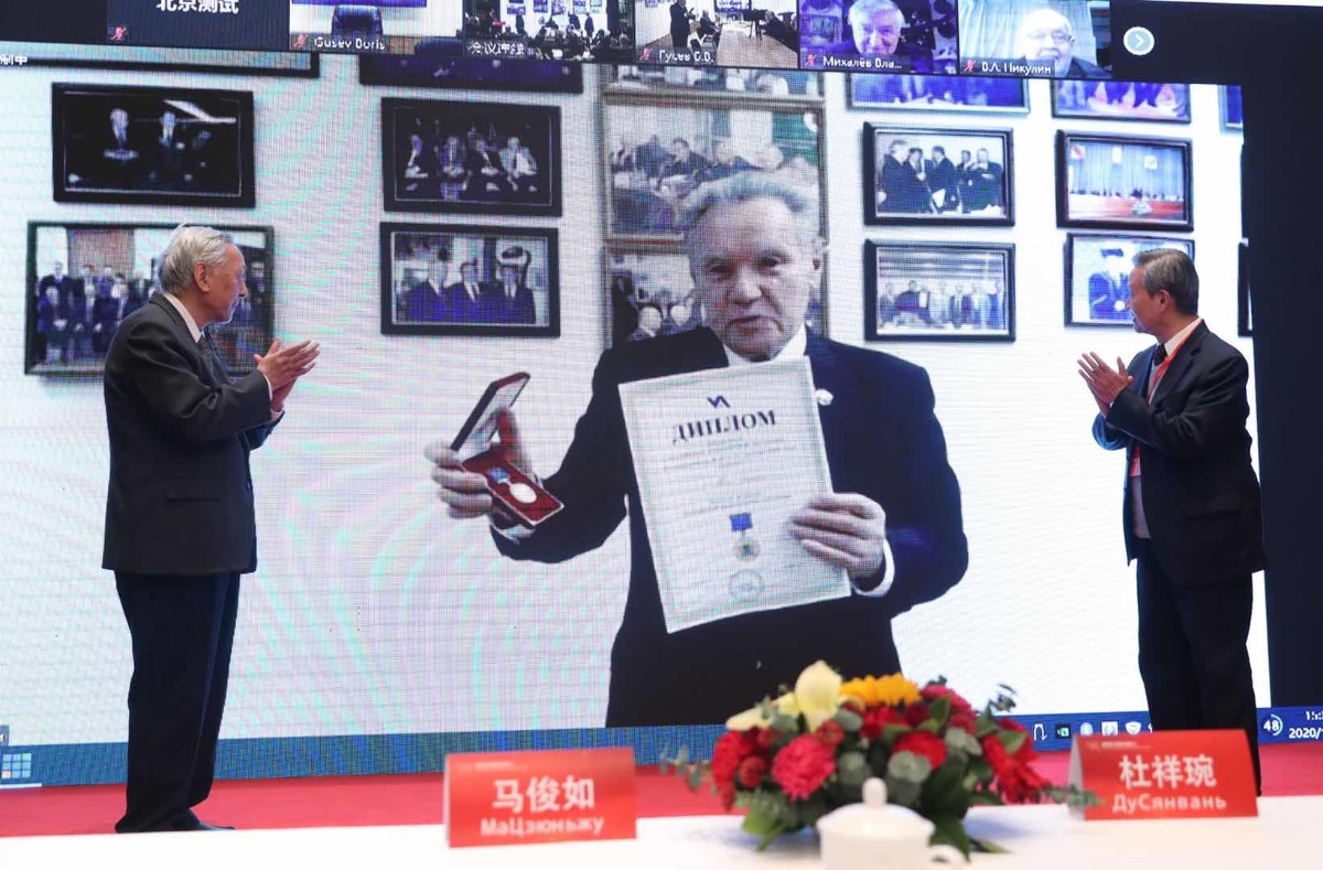 当日,俄罗斯工程院为五位新当选的中国籍院士龙腾、王立军、张丹、庄巍、李永胜颁发院士证书。凭借为中俄人才交流与科技合作做出的突出贡献,马俊如和杜祥琬获颁了俄罗斯工程院金质勋章。