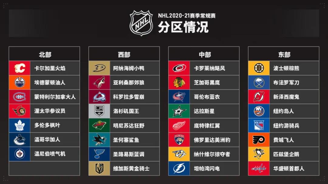 为减少球队长途旅行的次数,降低感染风险,本赛季的赛制相较以往变化较大。正式的训练营将于1月3日开启,训练营结束后直接展开常规赛,季前赛被取消。常规赛中,加拿大的7支球队将组成独立分区,其余24支美国球队则根据地理位置被划分为三个分区。每支球队只和同一分区内的球队交手,美国球队将和每个对手均交手8场,加拿大球队则将与每个对手进行9至10场比赛。