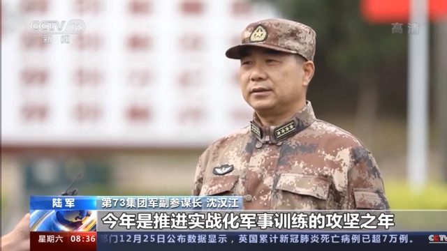 第73集团军副参谋长 沈汉江:今年是推进实战化军事训练的攻坚之年,集团军针对渡海登岛、联合打封、综合防卫等使命课题展开攻关演练,深化陆航、电抗等新型作战力量运用,同时将新型无人化装备融入作战体系,让部队在实战实训、联战联训中全面提高训练水平和打赢能力。