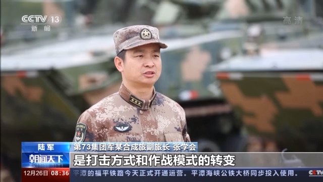 第73集团军某合成旅副旅长 张学会:新装备给我们带来的是打击方式和作战模式的转变,我们着眼信息火力融合、侦控打评一体,重点研练快速机动、精确打击、整体协同,充分检验新装备作战效能,创新战法训法,让新装备快速形成战斗力。