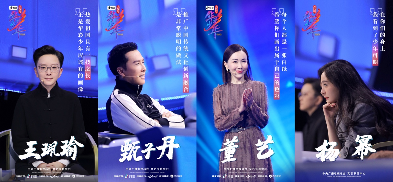 除了才华横溢的少年们,节目中的四位“华彩少年上线官”的表现也可圈可点,他们以专业技能、国风融合、创意创新作为标准,决定是否为少年进行“添彩”。节目制片人董艺同时身为“国风少年成长计划”发起人,提出了很多专业、中肯的建议。“国风少年成长计划”守护人王珮瑜,与少年进行了即兴京剧合作《四郎探母》。“国风少年成长计划”助力人甄子丹,不仅分享了职业生涯的经验,还亲自展现钢琴才艺,身体力行激励少年。“国风少年成长计划”见证人杨幂,对每一个节目观察细致入微,提出了不少中肯建议,她对表演质量的把控之高,成为节目的“严格担当”。