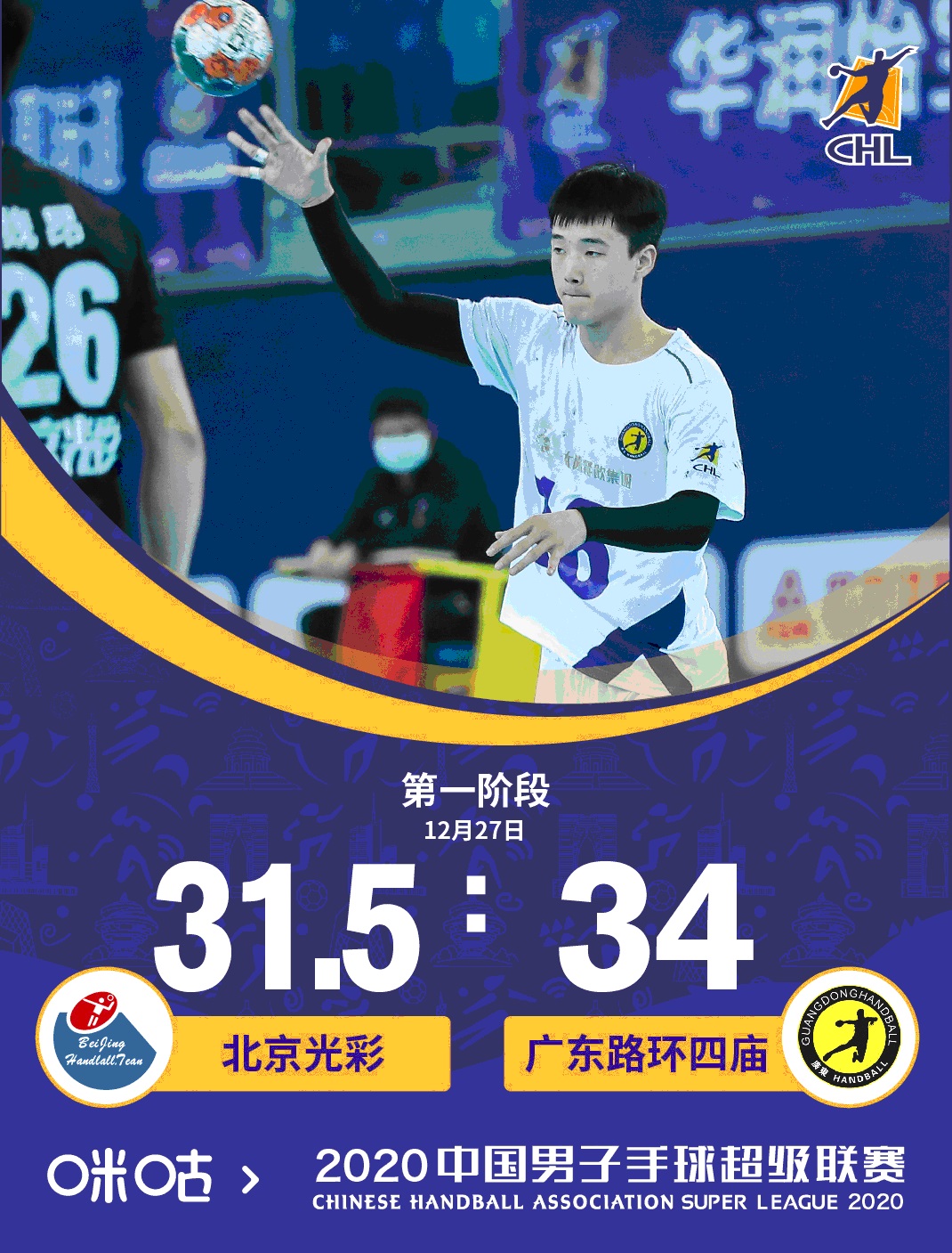 12月27日,中国男子手球超级联赛结束了第一阶段的比赛。北京光彩男子手球俱乐部在第一阶段的最后一战中,以31.5比34不敌广东路环四庙男子手球俱乐部,遭遇三连败。