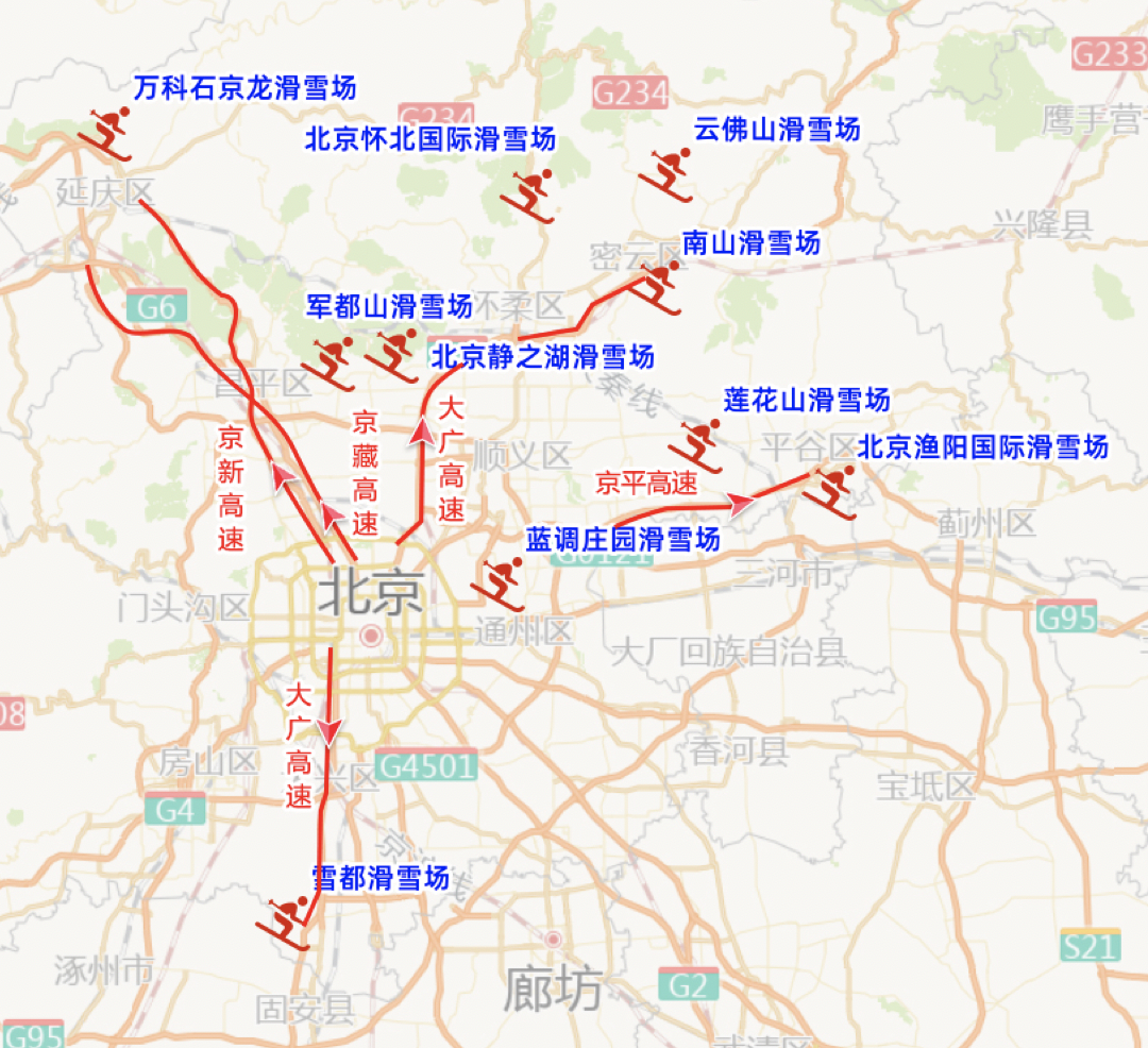 市交管局今天下午发布的元旦假期交通预报显示,近期,滑雪等冬季运动热度上升,去往军都山、南山、怀北、云佛山、渔阳、莲花山等滑雪场娱乐的客流量较大,虽然高速公路不减免小客车通行费用,但连接城区的京藏、京新、大广、京平等高速公路车流量仍将有所增加,建议元旦假期中准备滑雪的市民错开出行高峰。