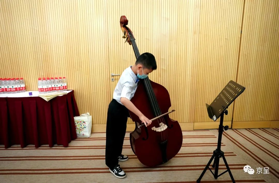 2020年6月6日,在保利大厦二层,北京国际音乐节少儿节日乐团招募“考场”外,这位小乐手拿捏着只属于他的主旋律。